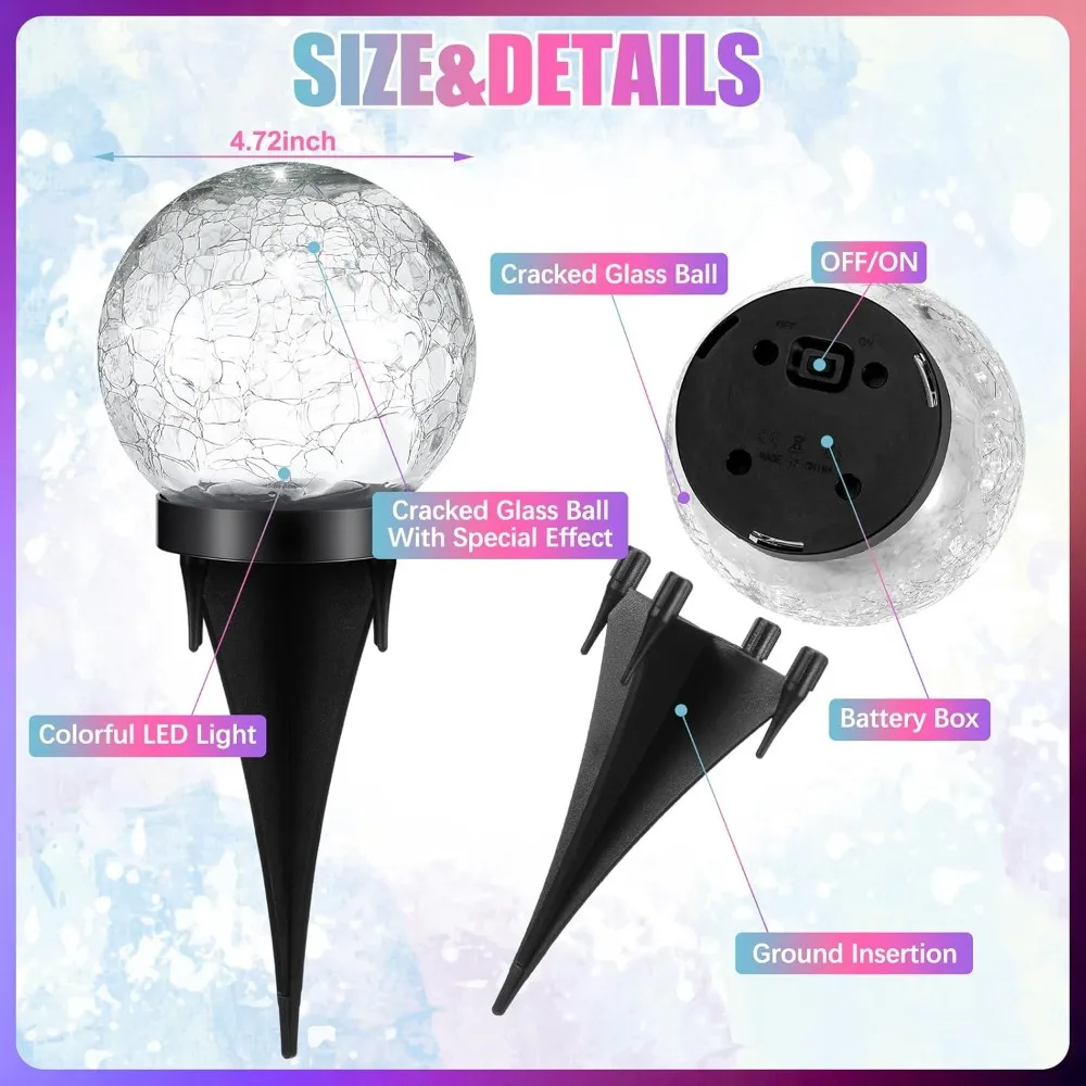 6 Pcs Extra Large Outdoor Multi-Color Pre Lit Crystal Ball Solar Light