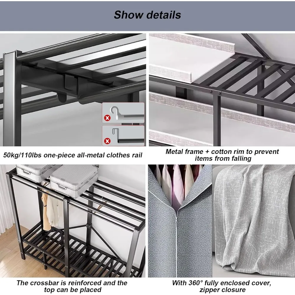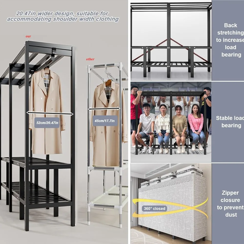 Portable Wardrobe Closet Rack, Heavy-Duty