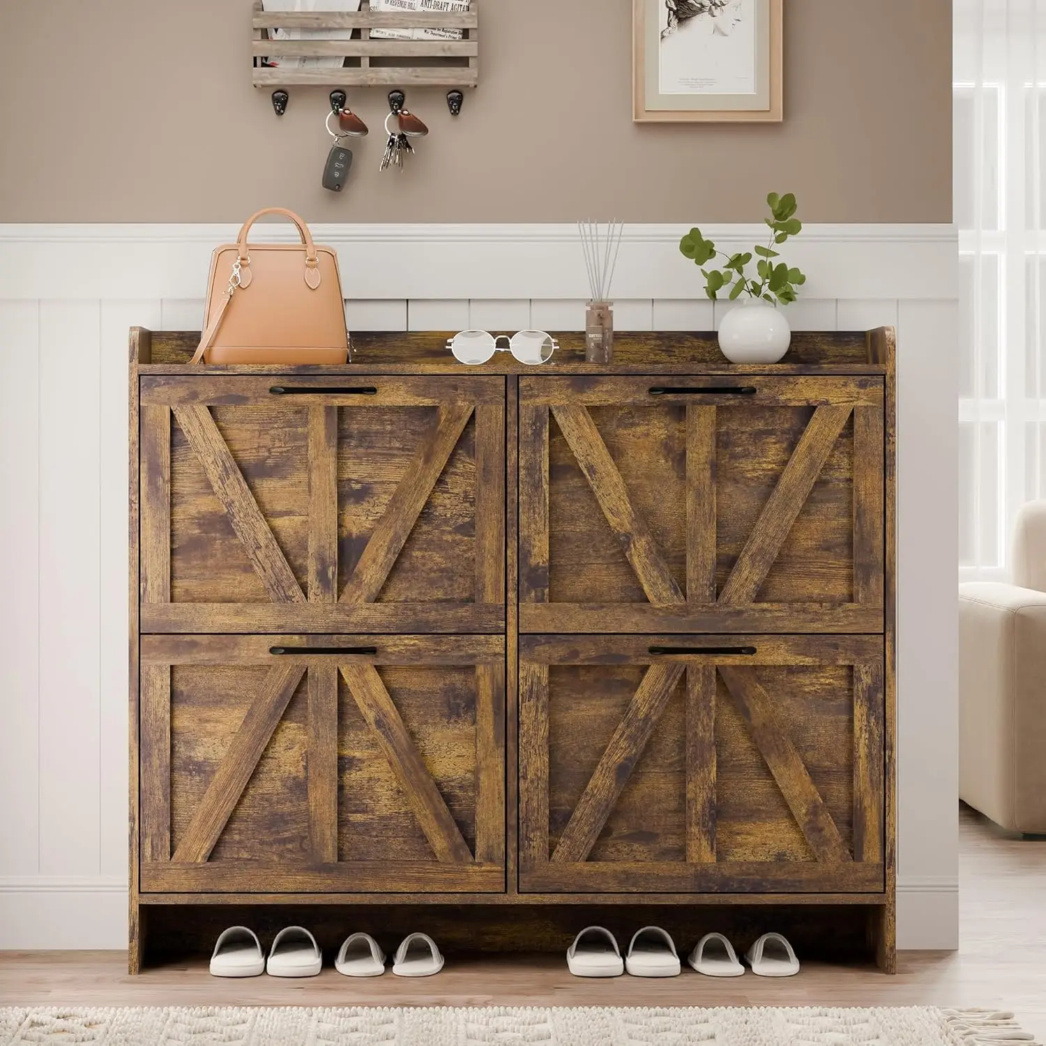 Shoe Storage Cabinet with 4 Flip Drawers